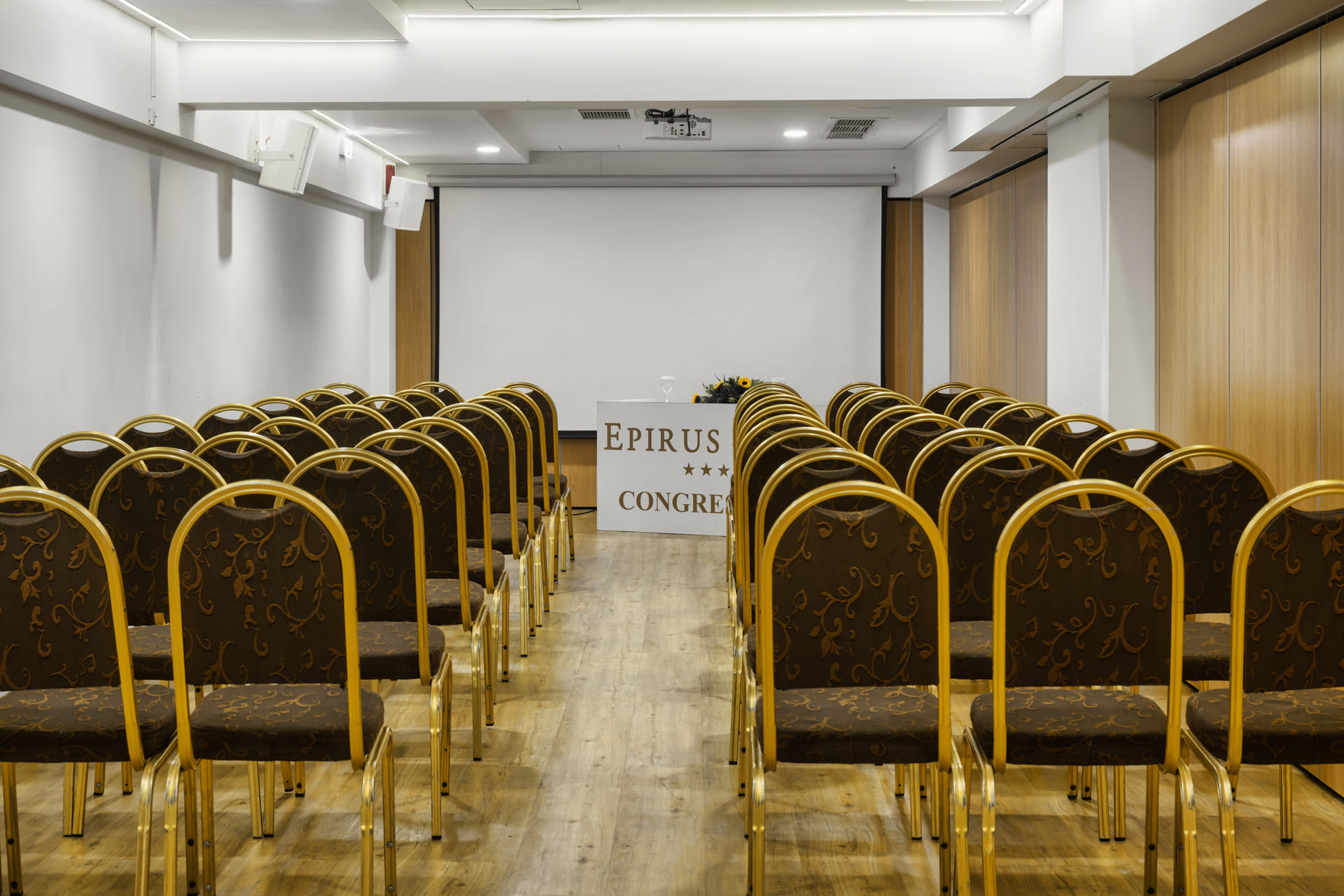 Salla Dioni është një hapësirë konferencash moderne dhe fleksibile, ideale për evente korporative, prezantime, seminare trajnimi dhe çdo lloj takimi profesional.